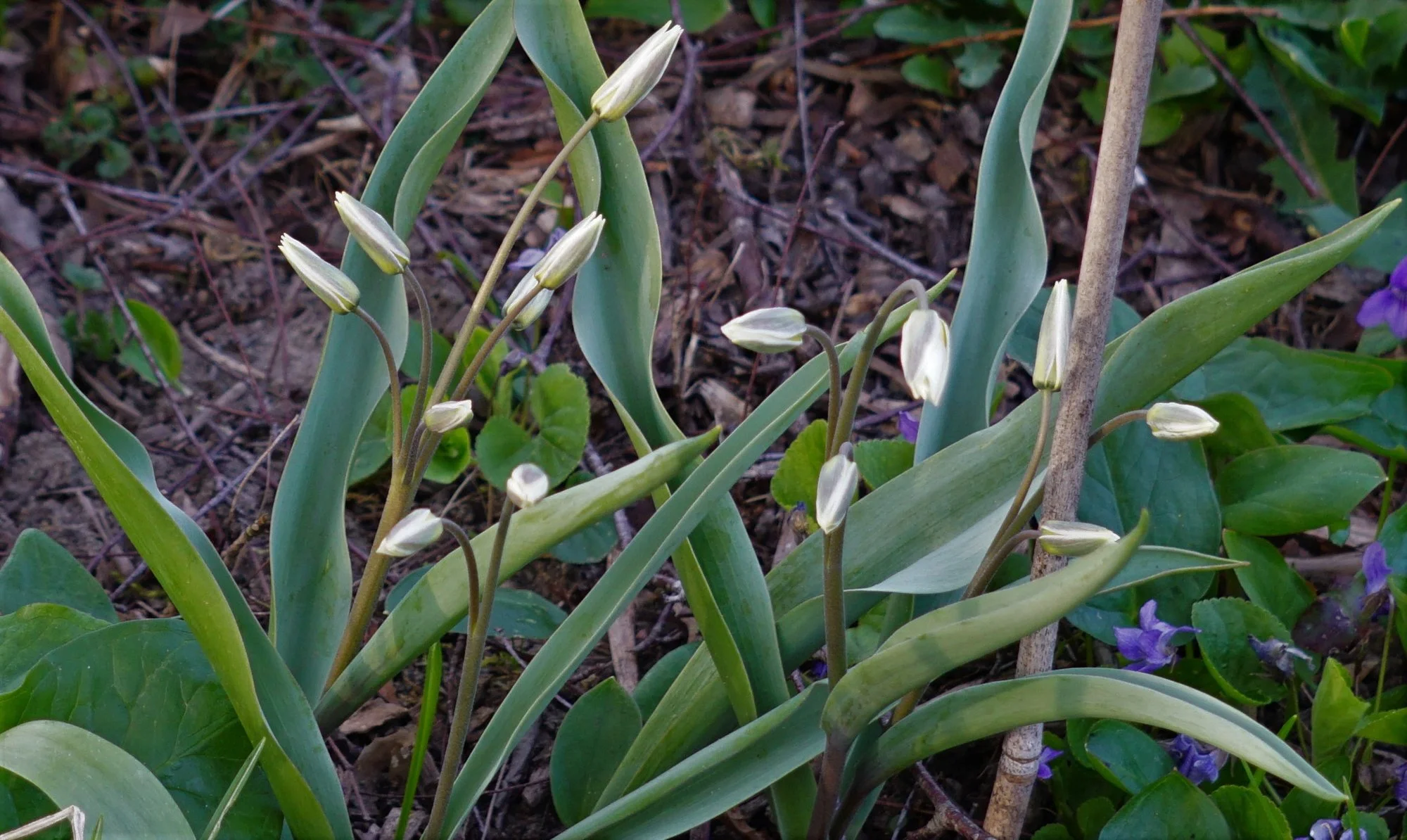 Das dürften die letzten meiner neuen Wildtulpen sein. Auch hier kommen aus jeder Zwiebel mehrere Blüten, aber nur 2 bzw. bei einer Pflanze auch 3.