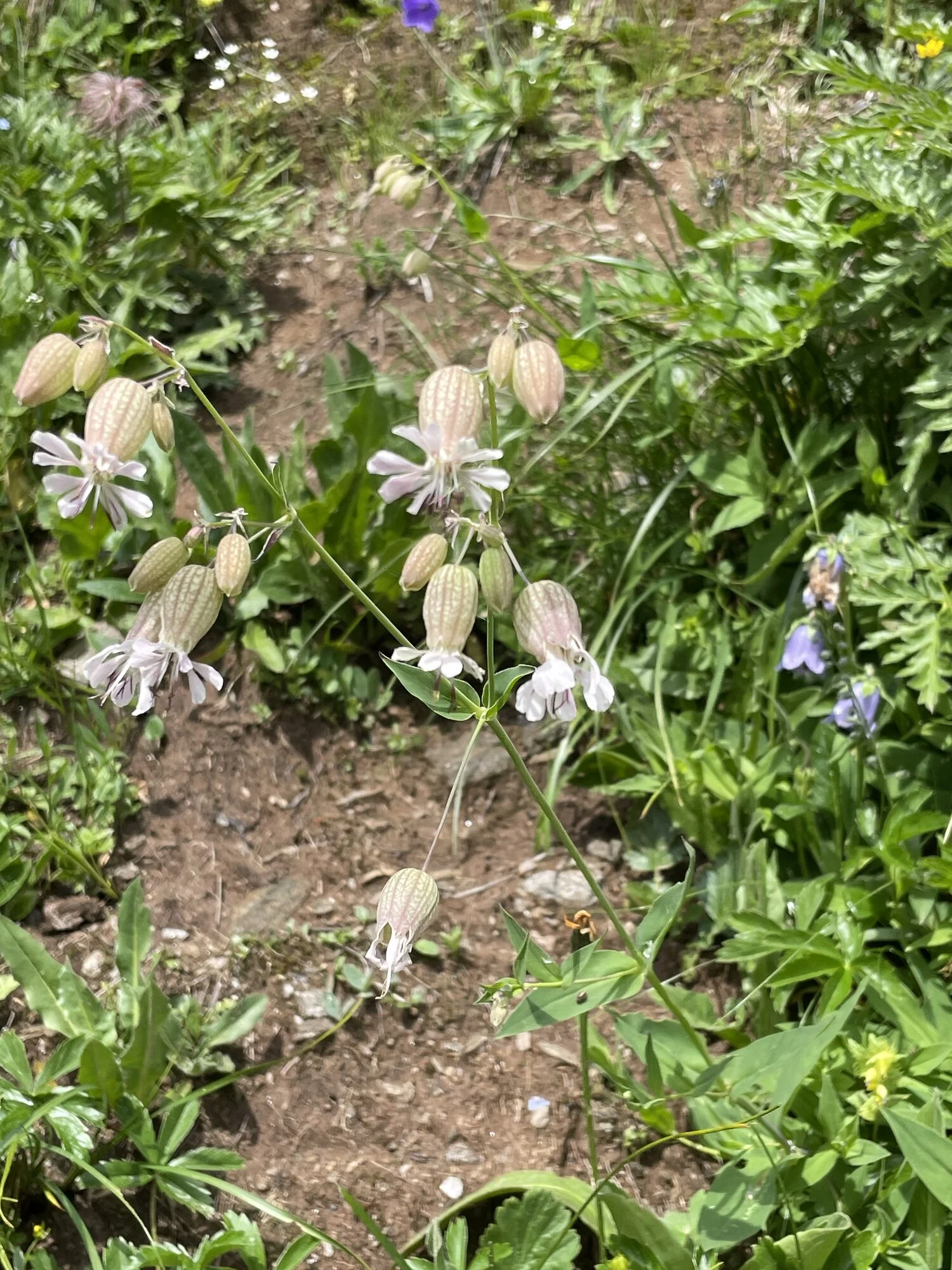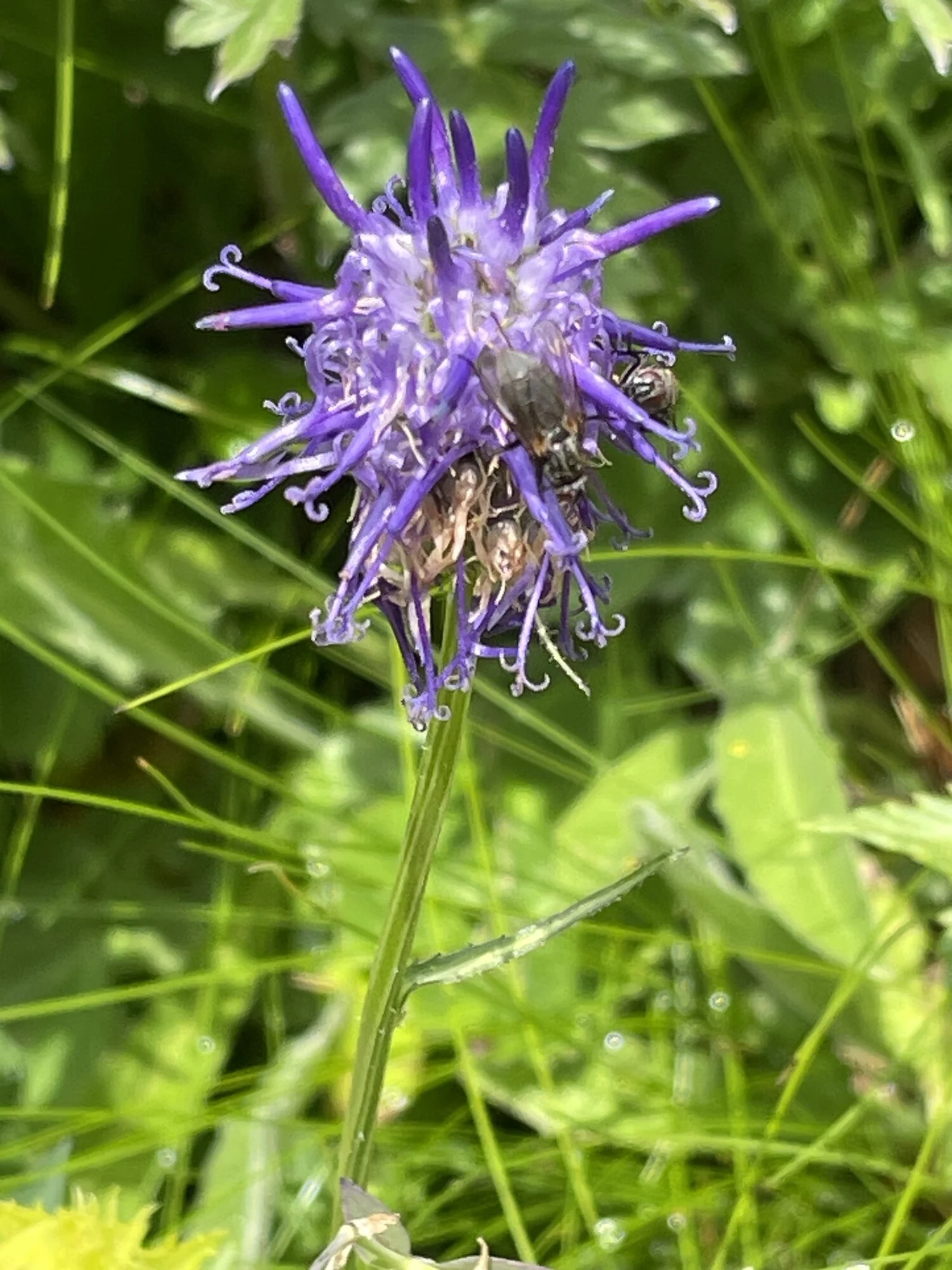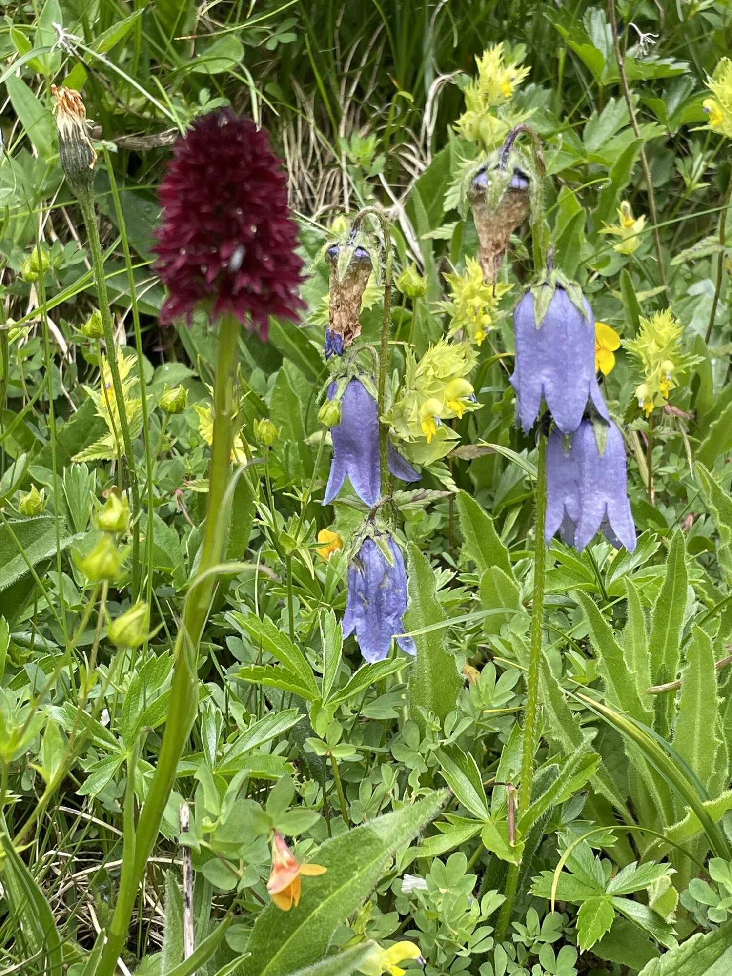 Glockenblume, Schwarzes Kohlröschen, Kugelige Teufelskralle, Taubenkropf-Leimkraut (von links nach rechts).Was sind denn das für schöne Blumen ? Kennst Du die Namen ? Wäre schön.![]()