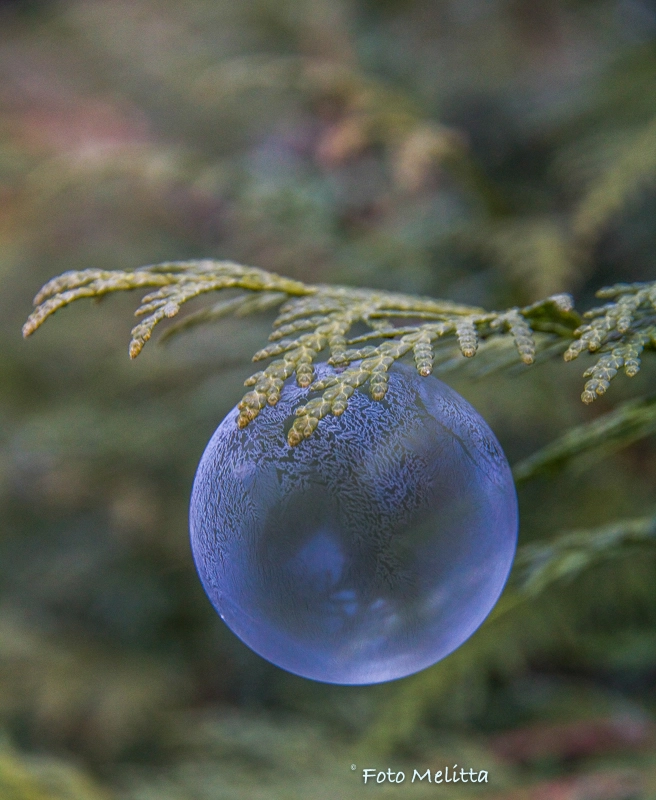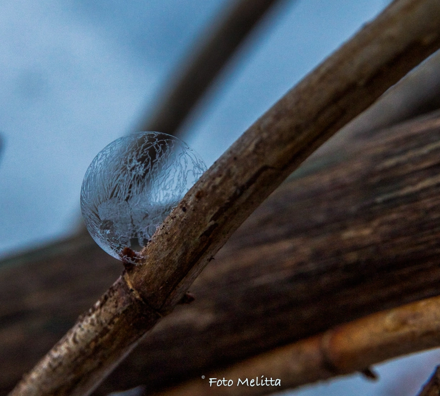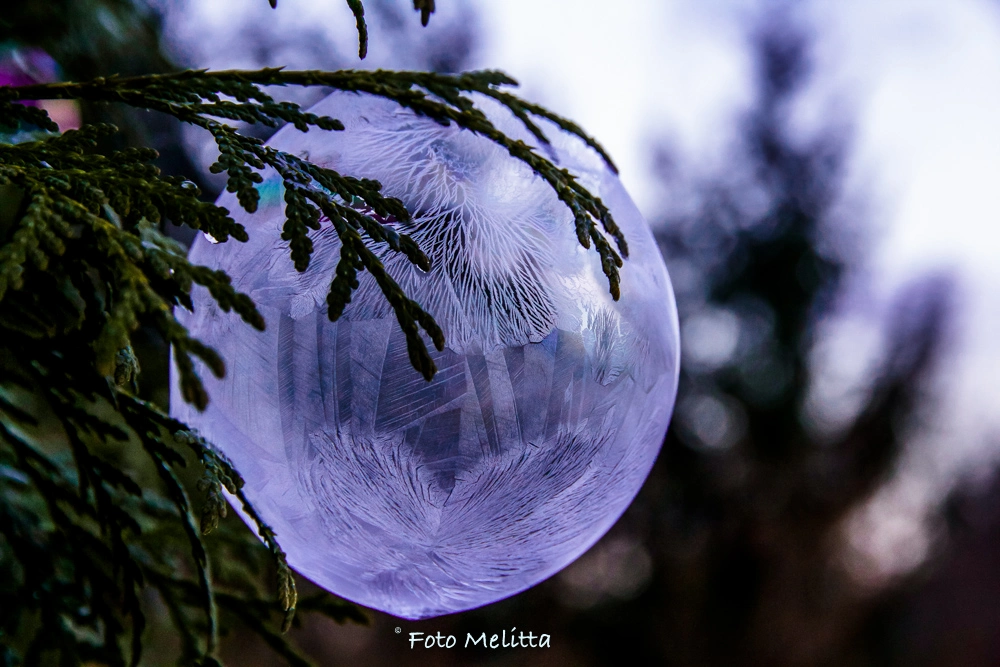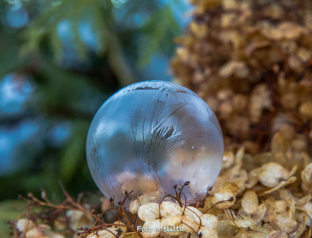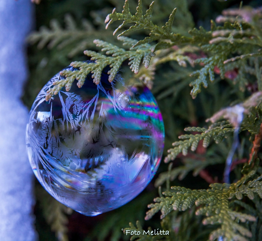Heute war ich ganz überrascht, dass die Seifenblasen schon bei -1° leichte Struktur angemommen haben - es hat länger gedauert, bei tieferen Temperaturen dauerts nur 90 - 120 Sek..
