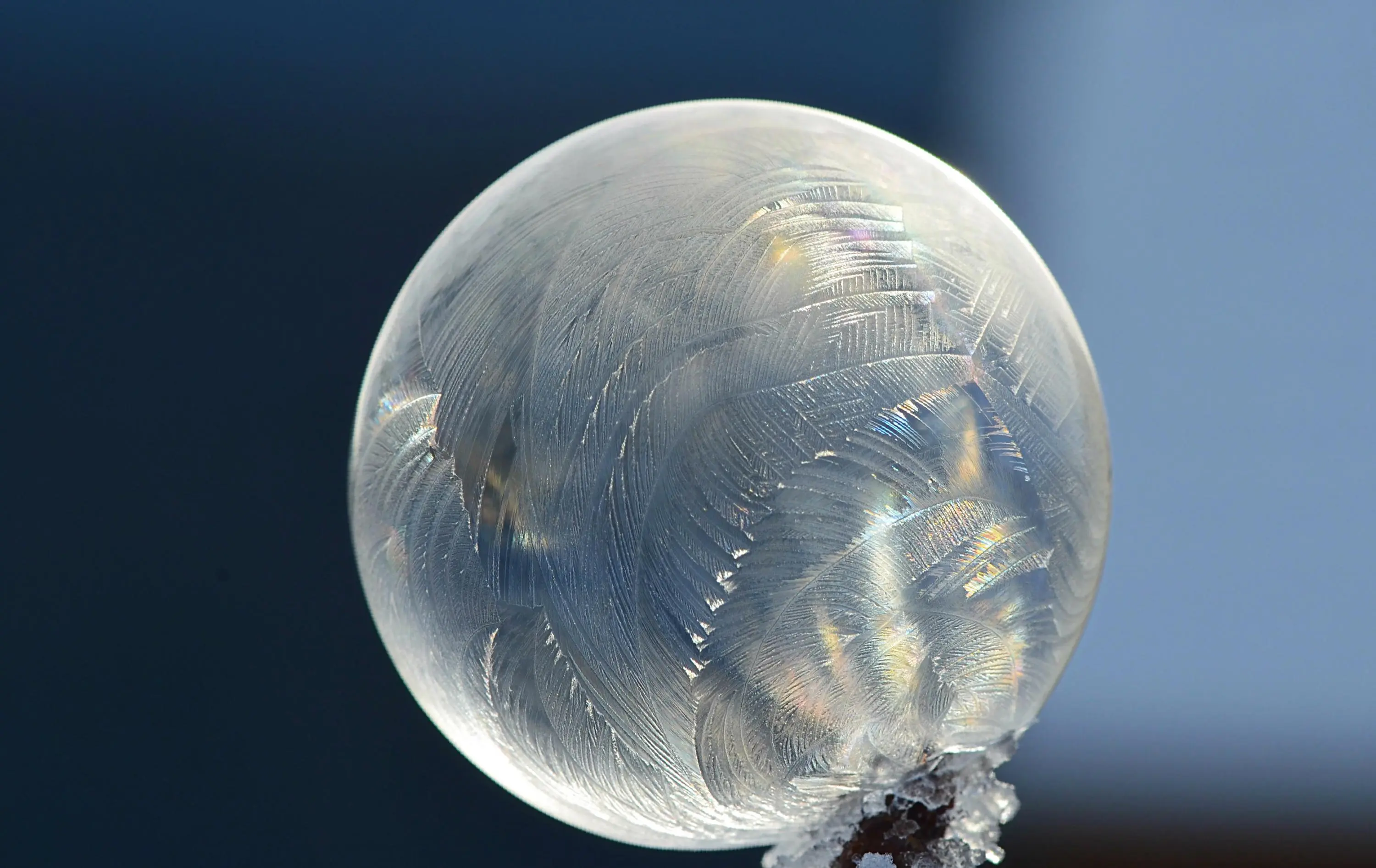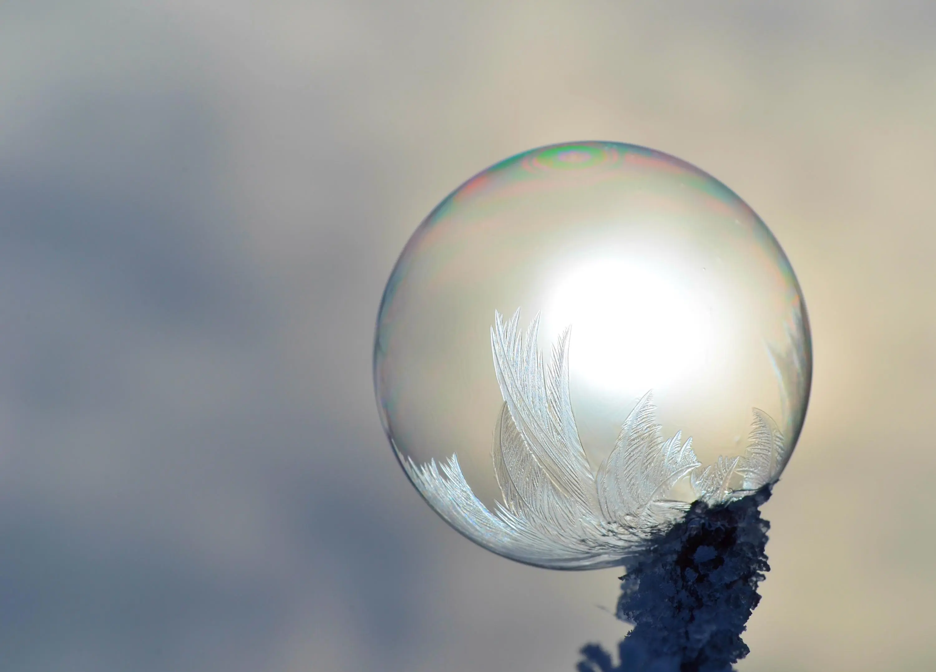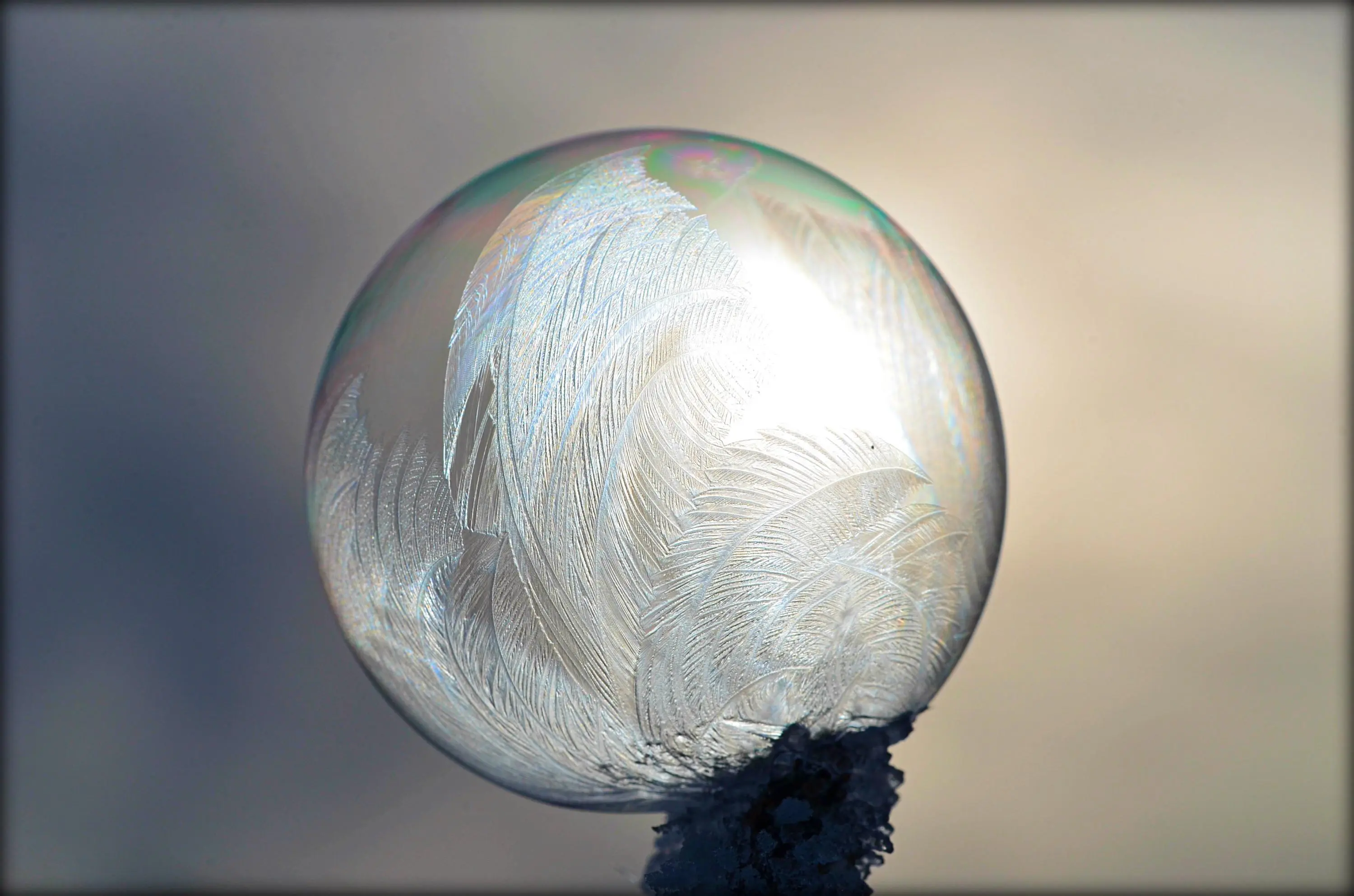 Heute war ich ganz überrascht, dass die Seifenblasen schon bei -1° leichte Struktur angemommen haben - es hat länger gedauert, bei tieferen Temperaturen dauerts nur 90 - 120 Sek..
