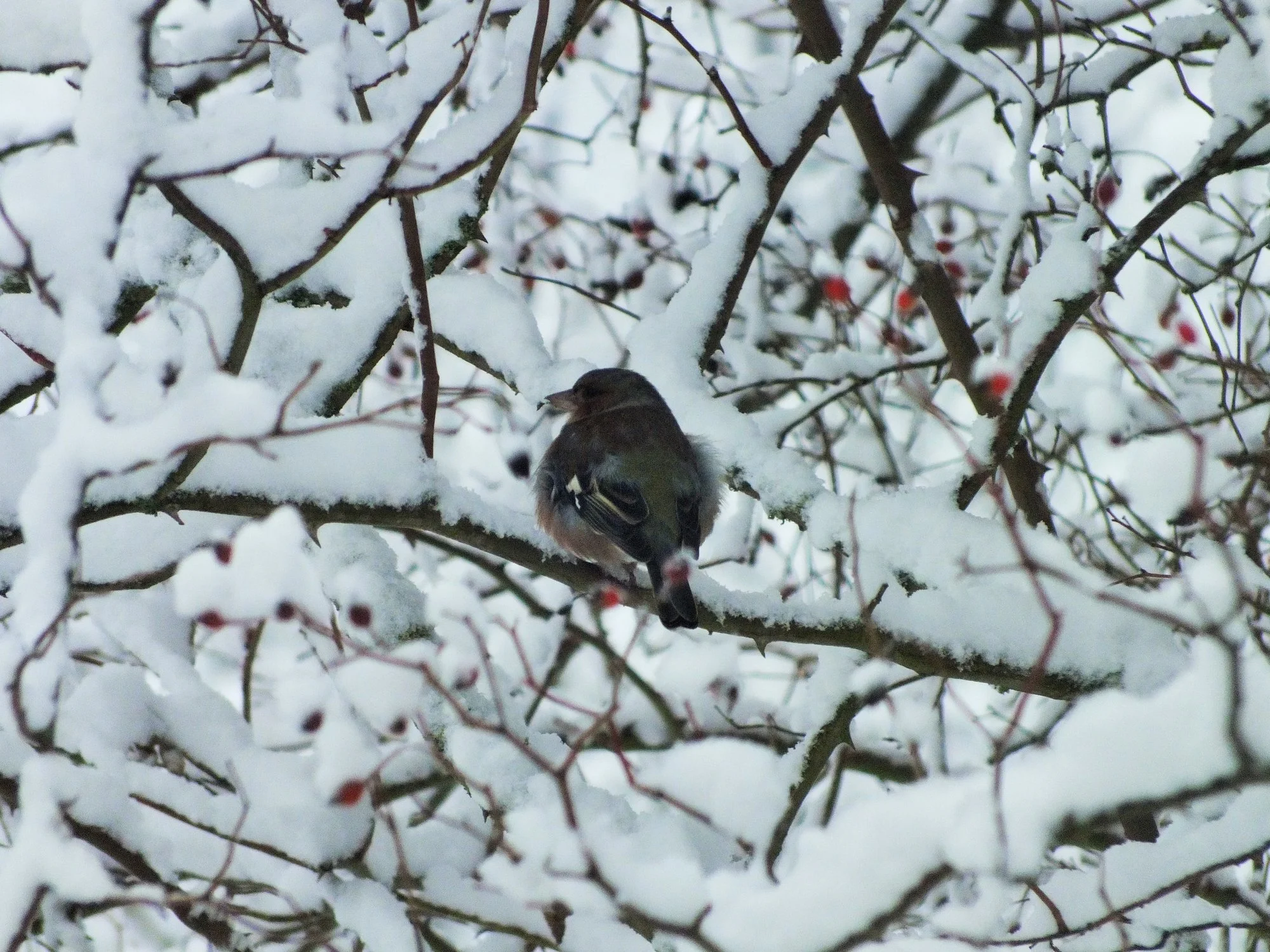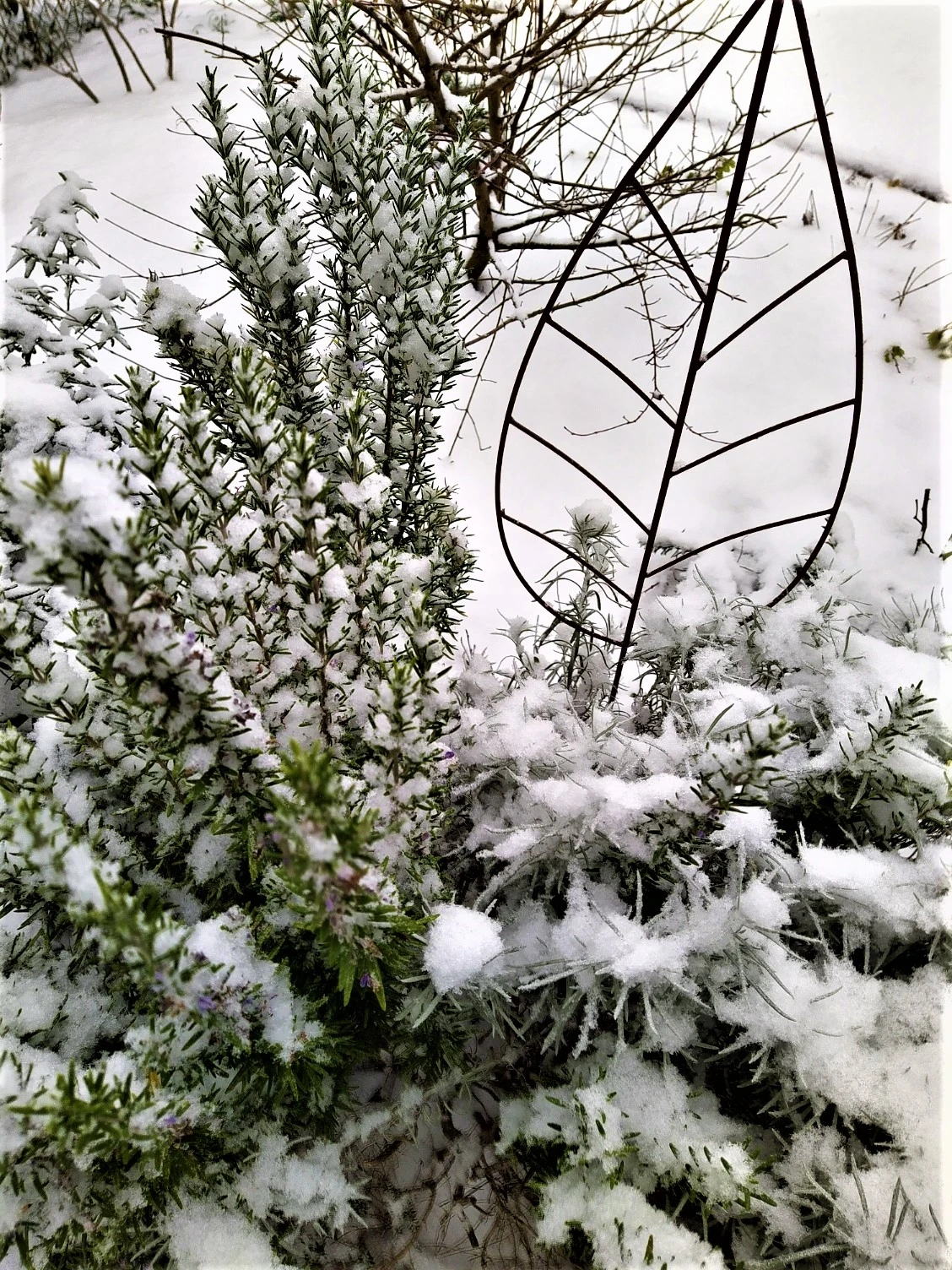obwohl einige Sträucher und der Zierahorn vom Schnee befreit werden mußten.