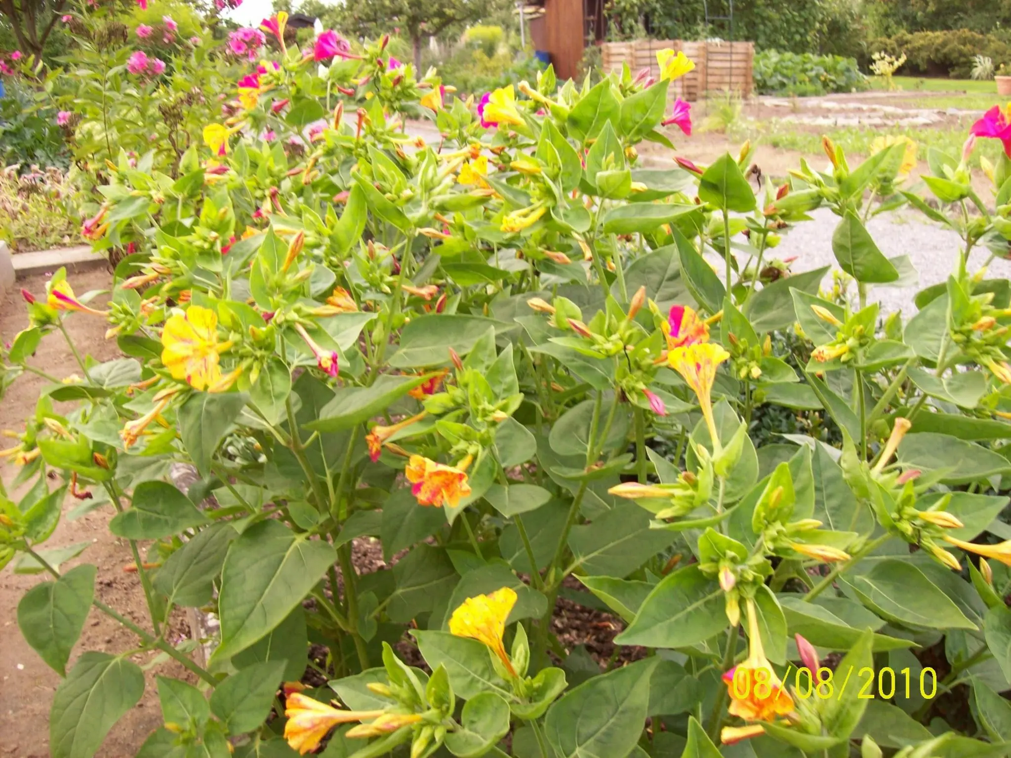 Der latainische Name ist Mirabilis . . . und die Blüten sind nur von Abends bis Morgens geöffnet, am Tag siehst Du von der Blütenpracht praktisch nix.