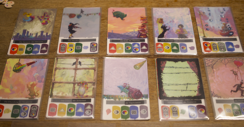 Als Spiel gefiel mir das Spiel nicht sonderlich, das war etwas mau, aber die Karten zu hübschen, verqueren oder lustigen Bildchen zusammenschieben, da war schon nett, weil die einzelnen Motive auch wirklich schön gemalt sind. Ich musste dabei einfach spontan an diesen Thread denken, weil ich gerade kurz vorher deine bunten Bilder gesehen hatte und hier ja auch schon immer mal etwas von wegen "ich komme nicht weiter" geschrieben wurde. Wobei meine Worte oben natürlich spaßig und nicht ernst gemeint waren: Motive übereinander schieben, um so zu seinem neuen Werk zu kommen, dürfte wohl eher nicht der richtige Weg zum eigenen Werk sein.