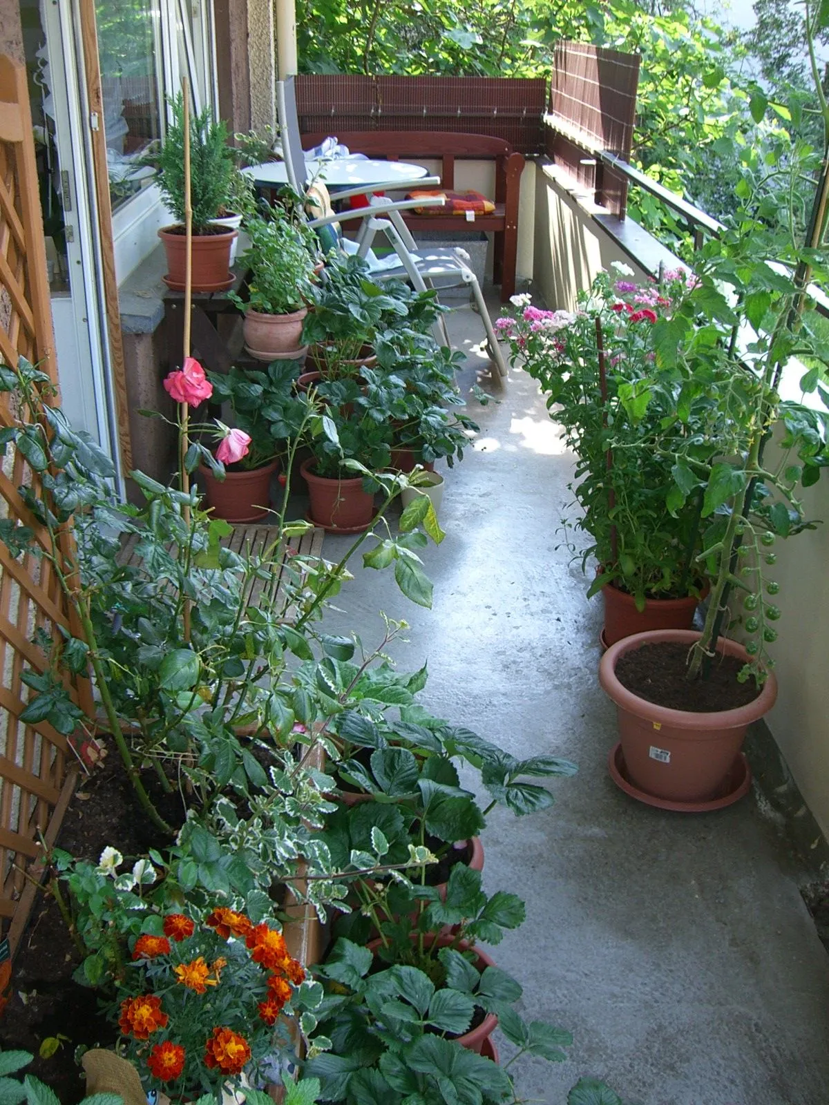 Es ist ein Gemüsebalkon :D Tomaten, Paprika, Bohnen und Kräuter. Na ein paar Blumen sind auch dabei aber noch wenig.
