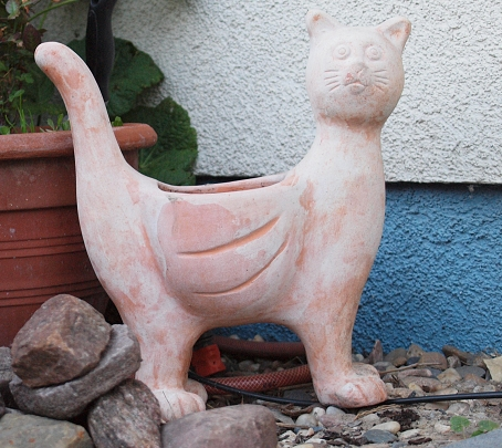 Hab mich für eine Fette Henne entschieden. Das paßt gut zu dieser Katze, die nicht winterhart ist. Müßte ich nachbrennen. Das ist mir aber etwas zu aufwändig.