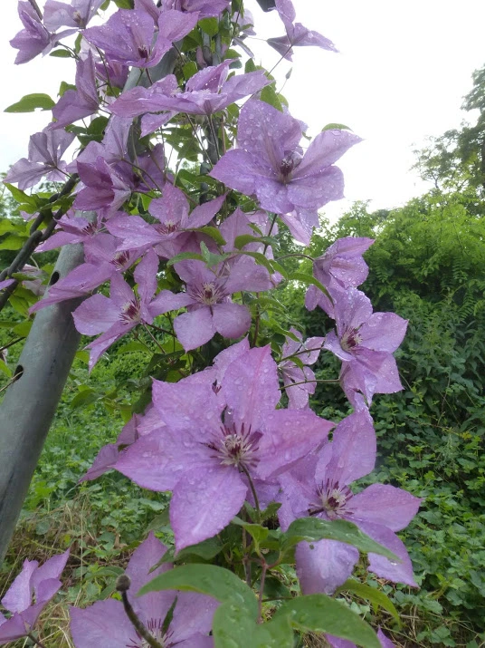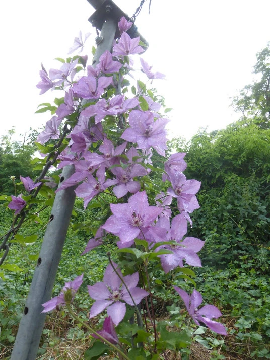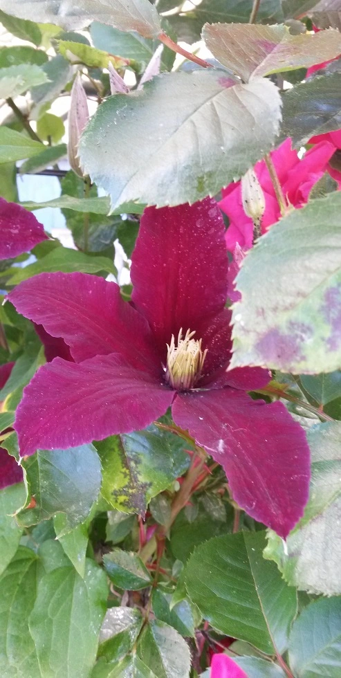 Darf ich vorstellen Clematis grandiflora in der Mehlbeere, dann kommt Clematis Henryi und dann die Rose Schneewittchen, alle hintereinander weg.