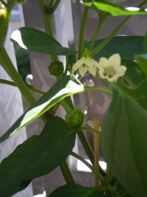 Also die Paprika sind dieses Jahr die große Überraschung. Zum ersten Mal angebaut, Läuse frei, und setzen Früchte an wie blöd. Die erste mit 11cm Größe wird heute gekostet.... :-)