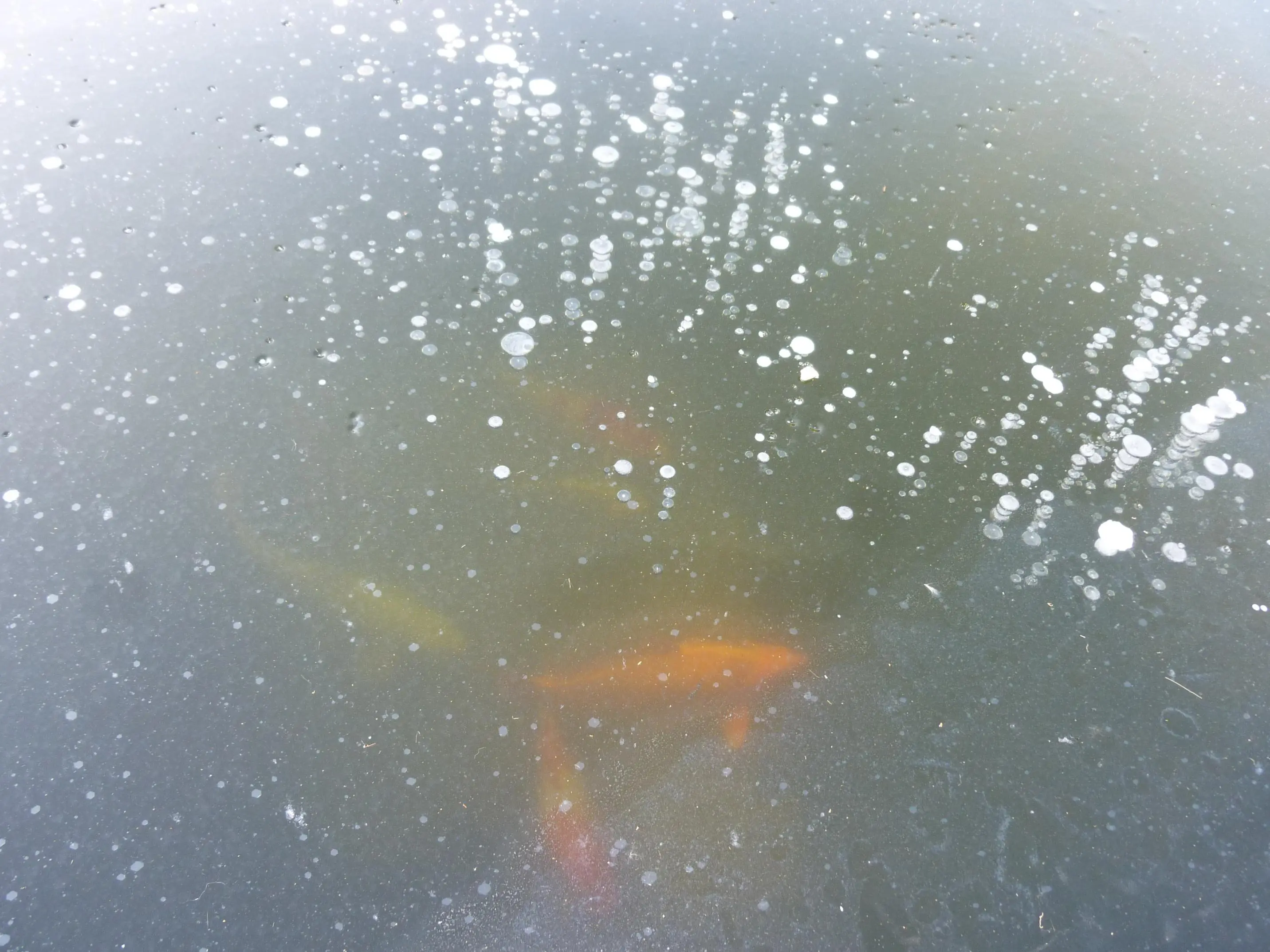 Und jetzt, wo es taut sind die Fischis nicht zu sehen ,weil das Eis milchig aussieht.