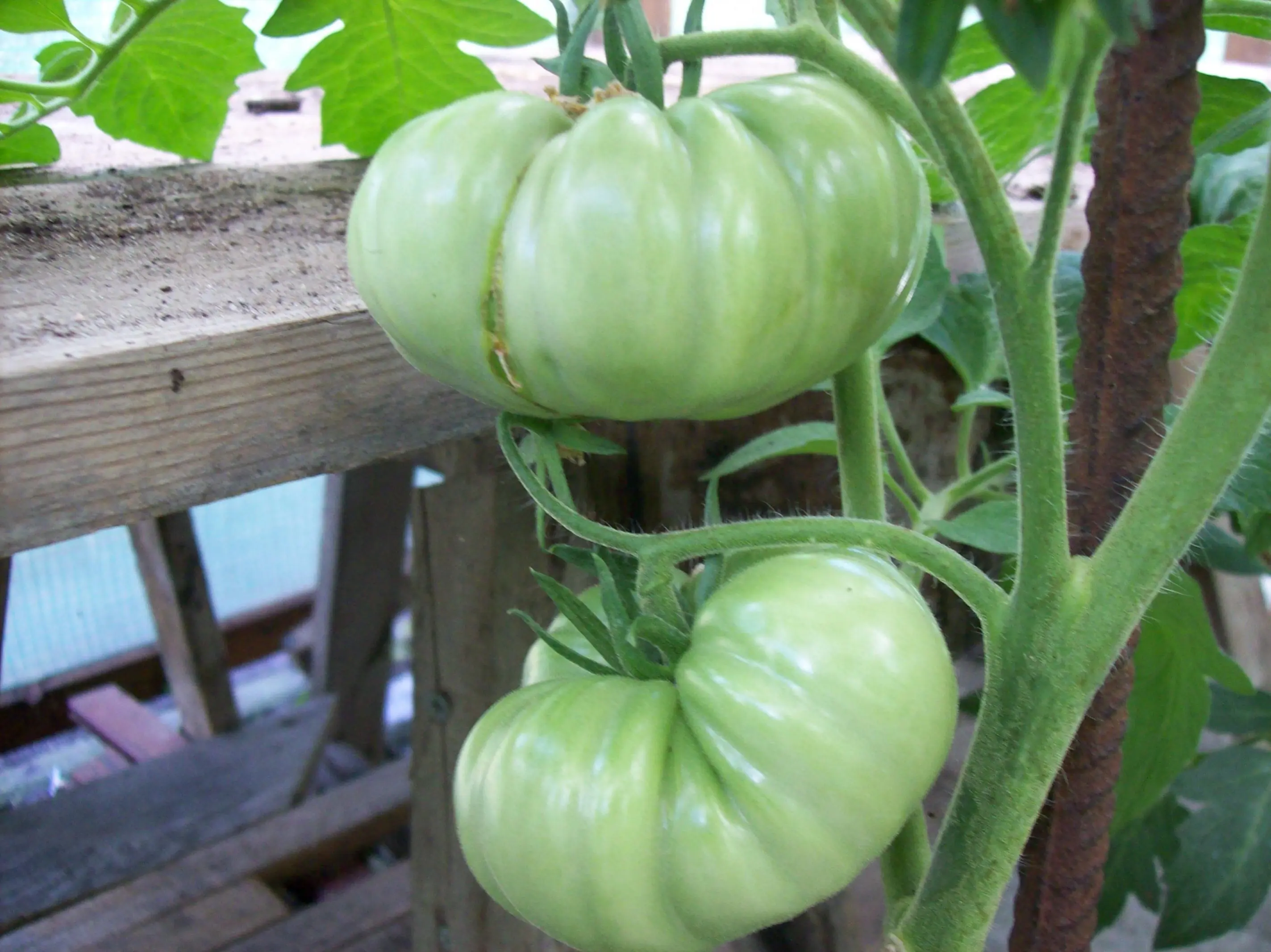 Die Harzfeuer ist übrigens meine zweitgrößte, selbstgezogene Tomate. Die größte ist eben eine "Frühtomate" (von nem ebayer hier in der Nähe) und die zwei sehen aus wie Geschwister. Bin mal gespannt, ob die Früchte ähnlich sind, weil meine definitiv samenfest ist und geschmacklich war sie letztes Jahr top (wenn erst einmal der Grünkragen etwas gelber wurde).