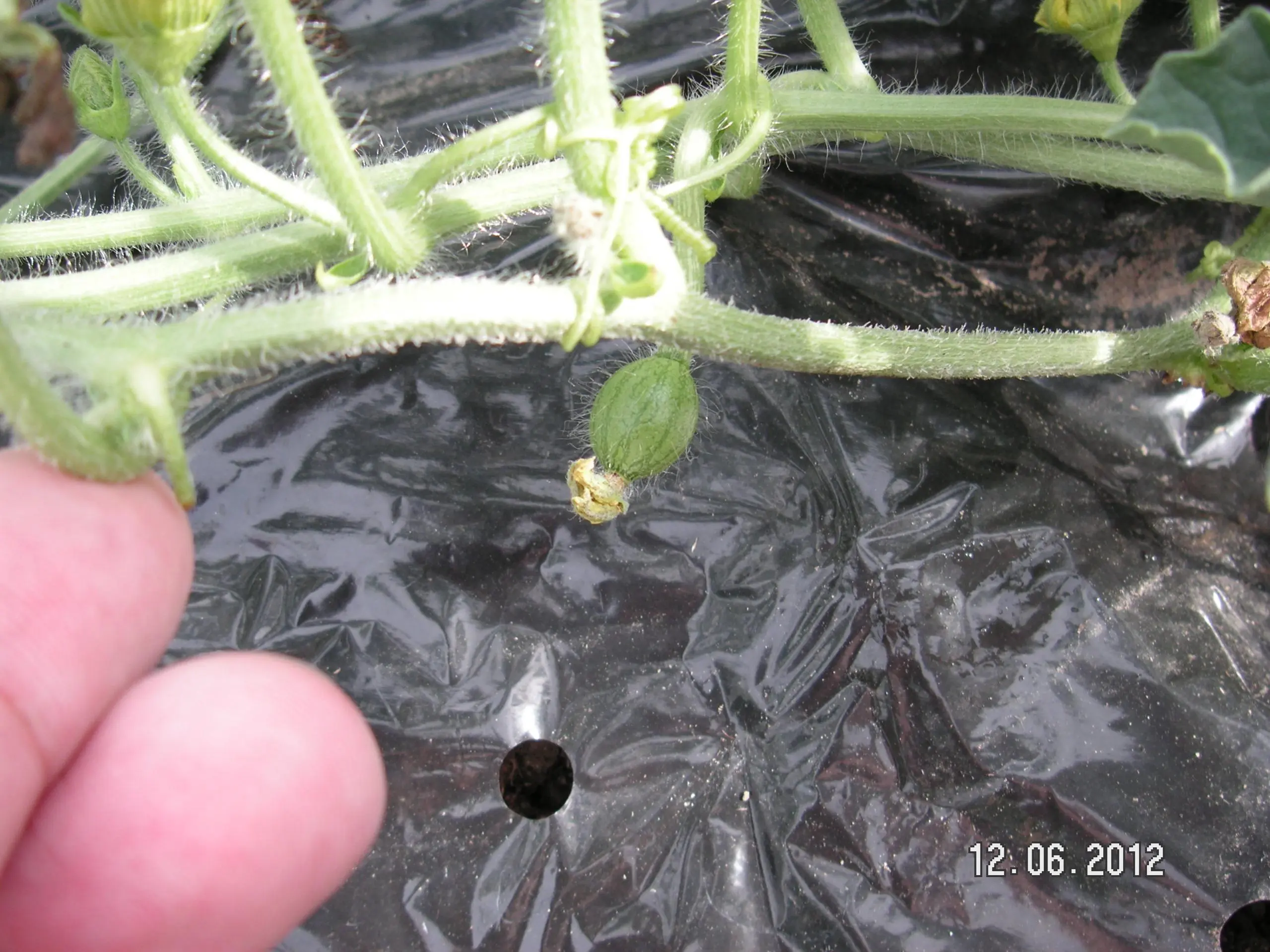 Meine eine Charentais hat bereits drei kleine Früchte angesetzt. Eine der Früchte ist zu 1/3 weggehackt. Wer könnte das gewesen sein?