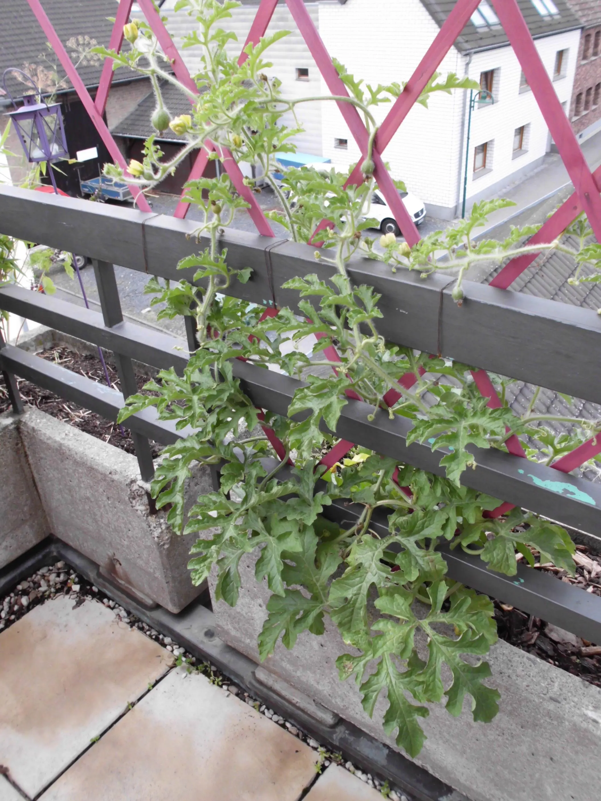 Warum auch immer, die Melone hat noch einen Mitstreiter bekommen und so wachsen im Balkonkübel munter vor sich hin nun zwei Sugar Baby. Wenn das Wetter so mild und schwül bleibt habe ich sogar noch Hoffnung.