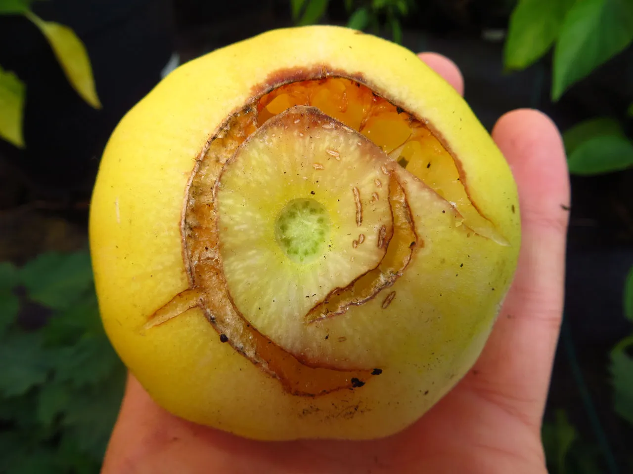 Hatten dann natürlich auch Mehltau und letzten Endes hatten wir nur 3 Melonen, eine davon ist auch noch aufgeplatzt (woran kann das liegen