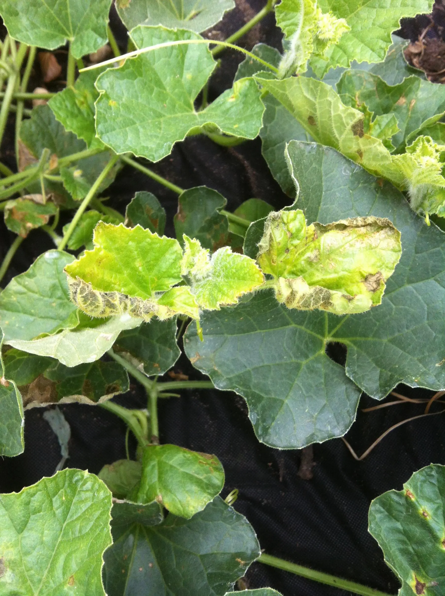 Aber eine meiner Zuckermelonen sieht nicht gut aus.. Betroffen sind sowohl junge als auch alte Blätter.