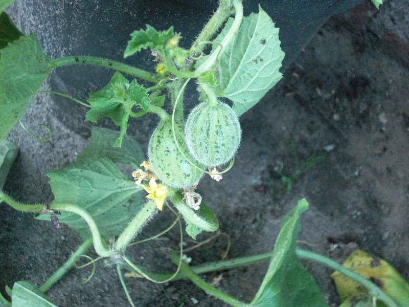 Hier noch neue Bilder, zwar von Gurken aber meine daneben wachsenden Zuckermelonen sehen gleich aus..