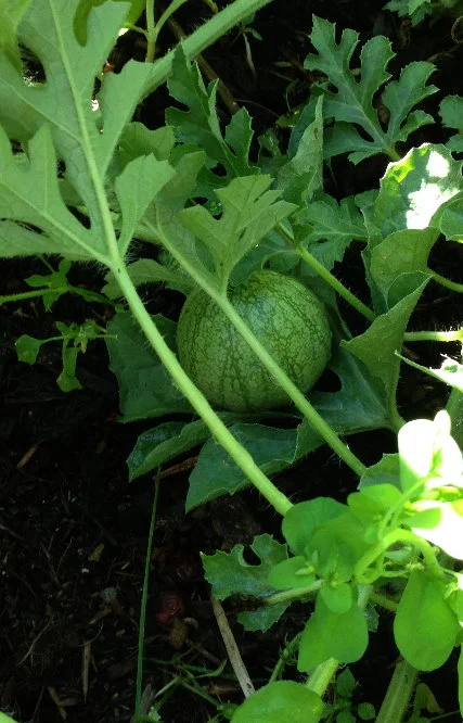 Die Wassermelonen im Gewächshaus machen sich langsam breit.