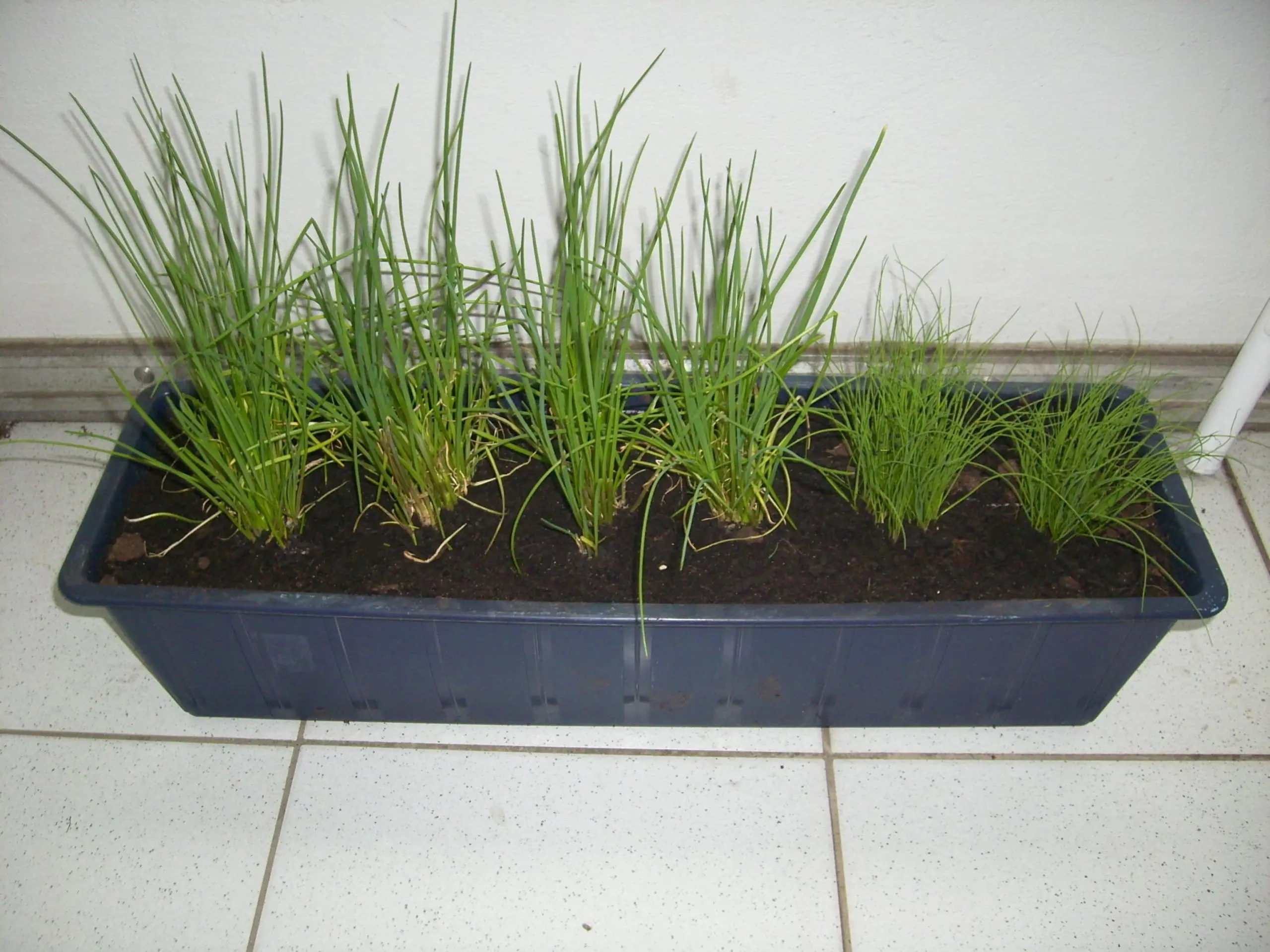 hier der gekaufte, mit dem selbst gesäten, schnittlauch. konnte nicht abwarten und hab mir noch einen gekauft. war so heiss auf brot mit schnittlauch.